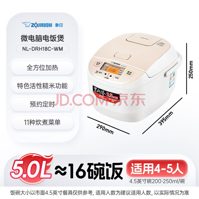 商品相册:象印(ZO JIRUSHI)电饭煲 多功能 微电脑 智能电饭锅 预约电饭锅 5L NL-DRH18C(4-5人份)第