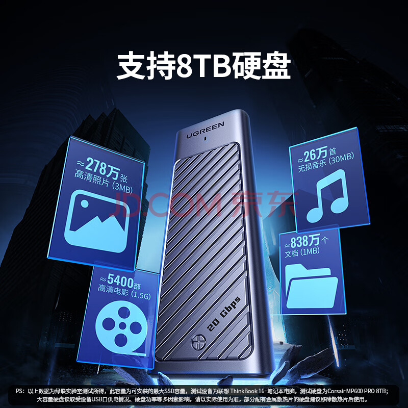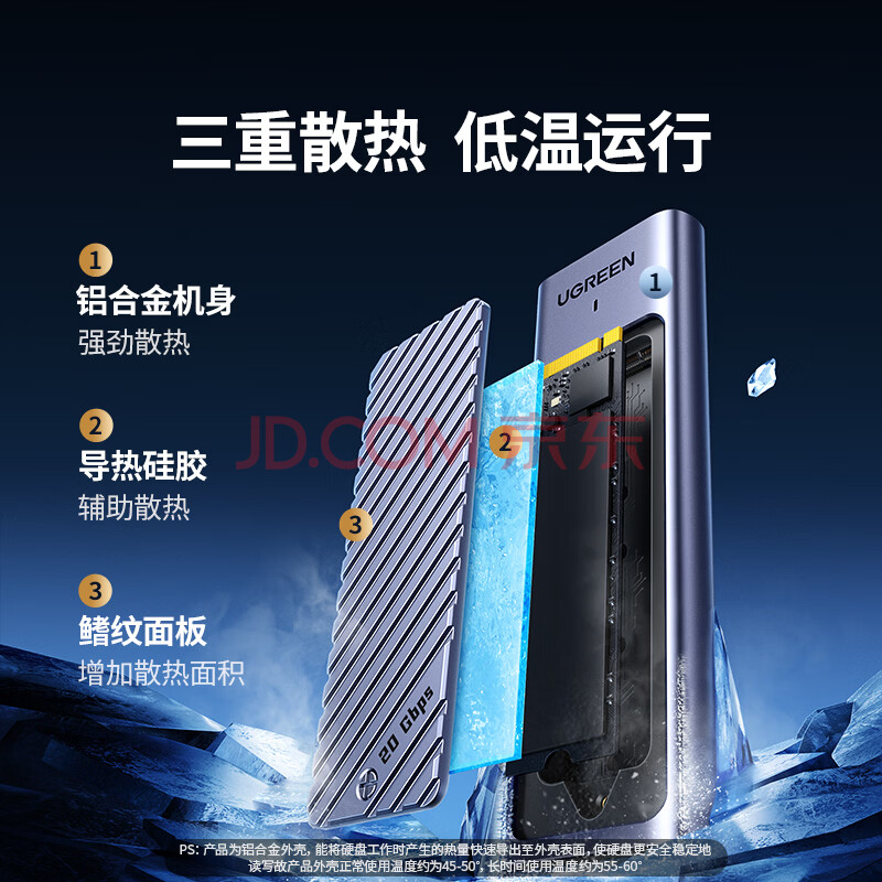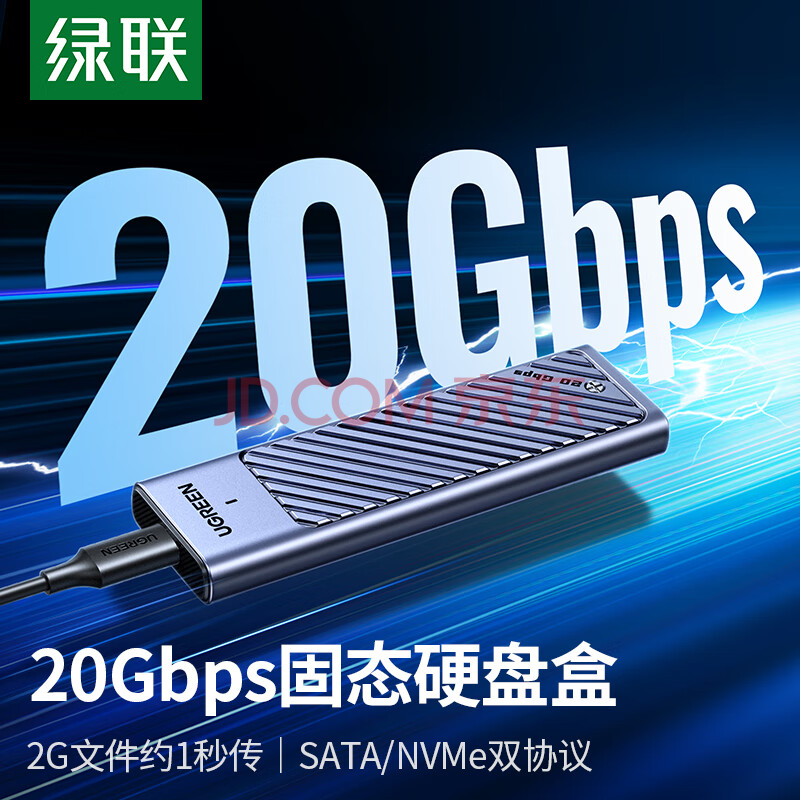 商品相册:绿联 M.2 NVMe/SATA双协议固态硬盘盒20Gbps 适用苹果17笔记本台式机手机外接SSD移动硬盘壳35576第