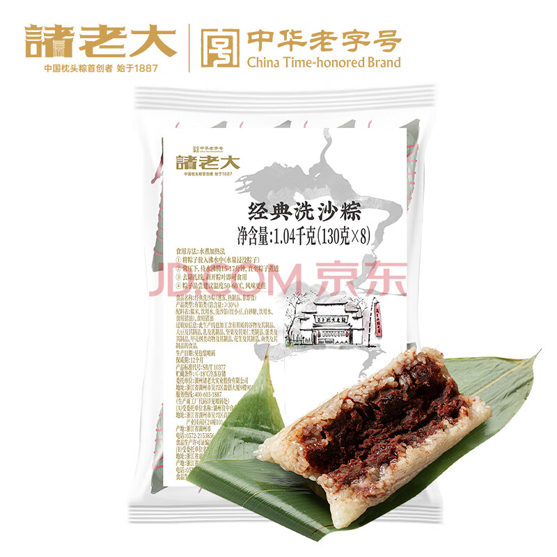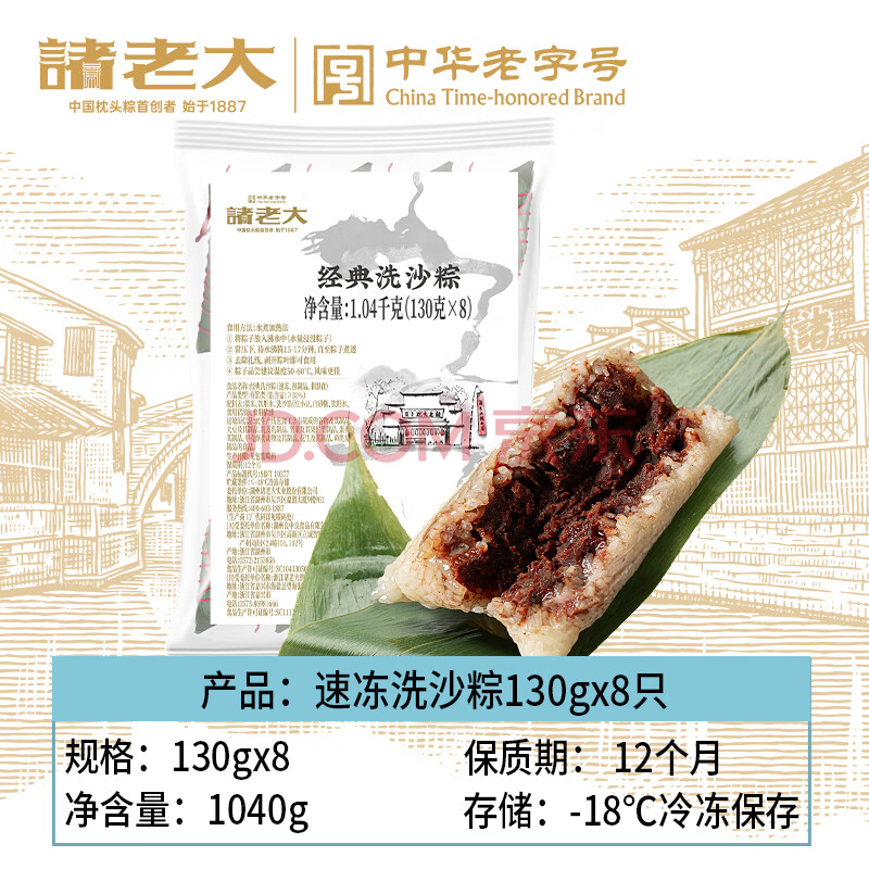 商品相册:诸老大速冻豆沙粽子130g*8只共2.08斤洗沙甜粽中华老字号早餐粽生鲜速食第