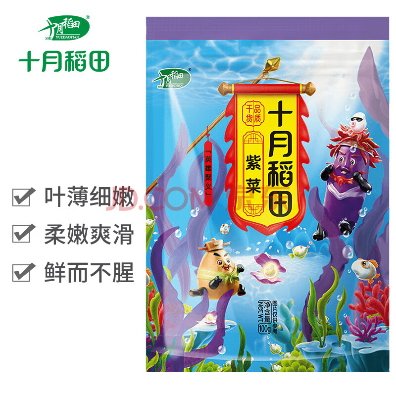 商品相册:十月稻田 霞浦产紫菜 100g 袋装 海带虾皮紫菜蛋花汤 早餐食材 海产干货第