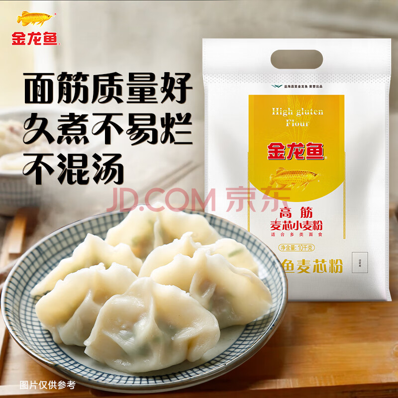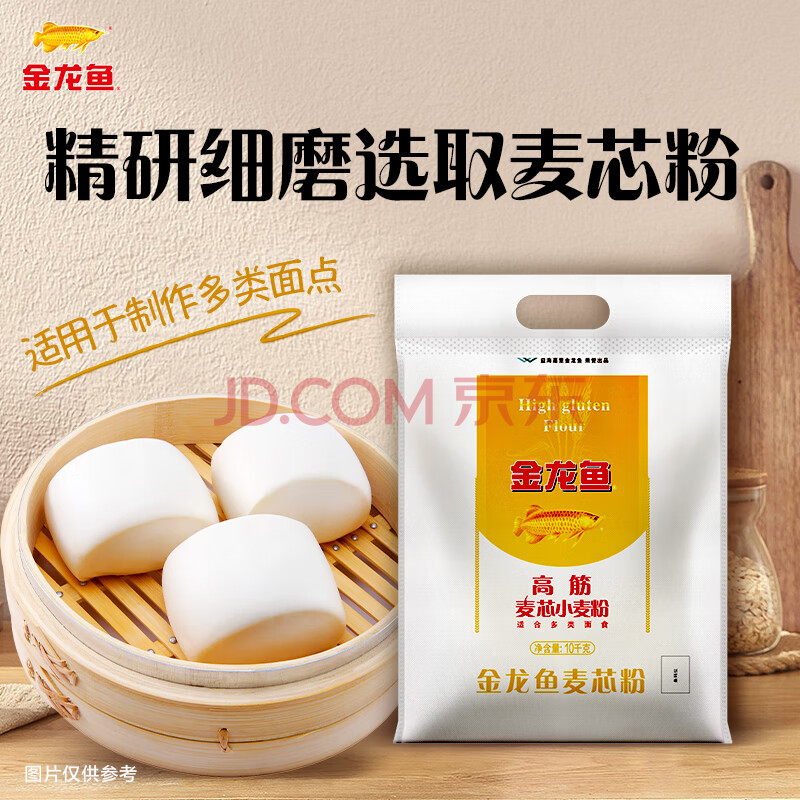 商品相册:金龙鱼 面粉 高筋粉 高筋麦芯小麦粉20斤 家用包子饺子馒头饼手擀面第