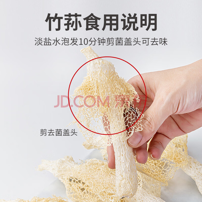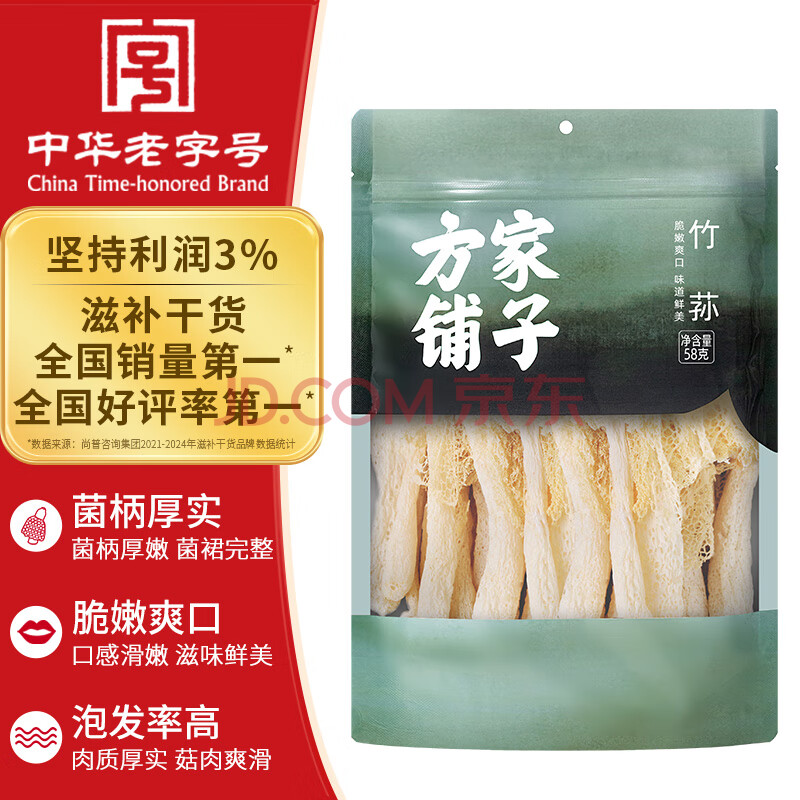 商品相册:方家铺子中华老字号 竹荪58g 竹笙干货菌菇汤包火锅食材炖汤煲汤第