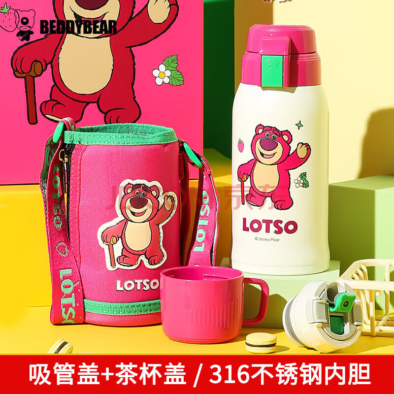 商品相册:杯具熊(BEDDYBEAR)儿童保温杯带吸管双盖两用儿童水杯316不锈钢学生杯子600ml草莓熊第