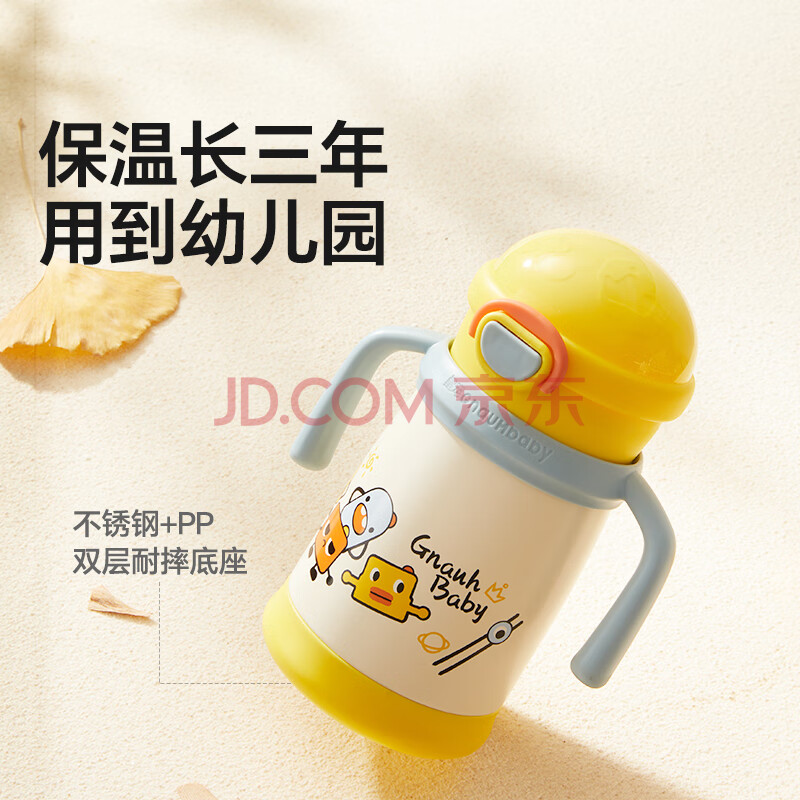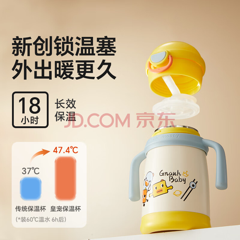 商品相册:皇宠保温杯儿童水杯宝宝学饮杯吸管杯幼儿园外出不锈钢水壶 黄350ml第