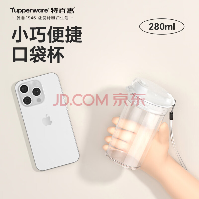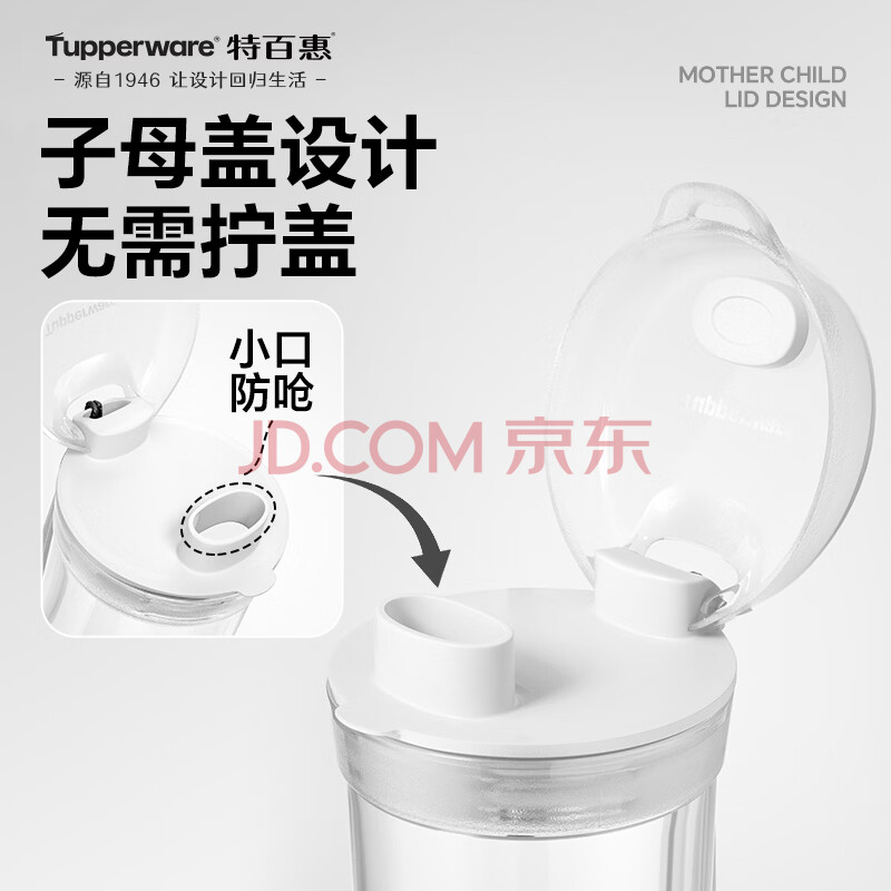 商品相册:特百惠(Tupperware)晶彩mini塑料杯280ML 男女学生夏季水杯子儿童双饮口便携 珍珠白第