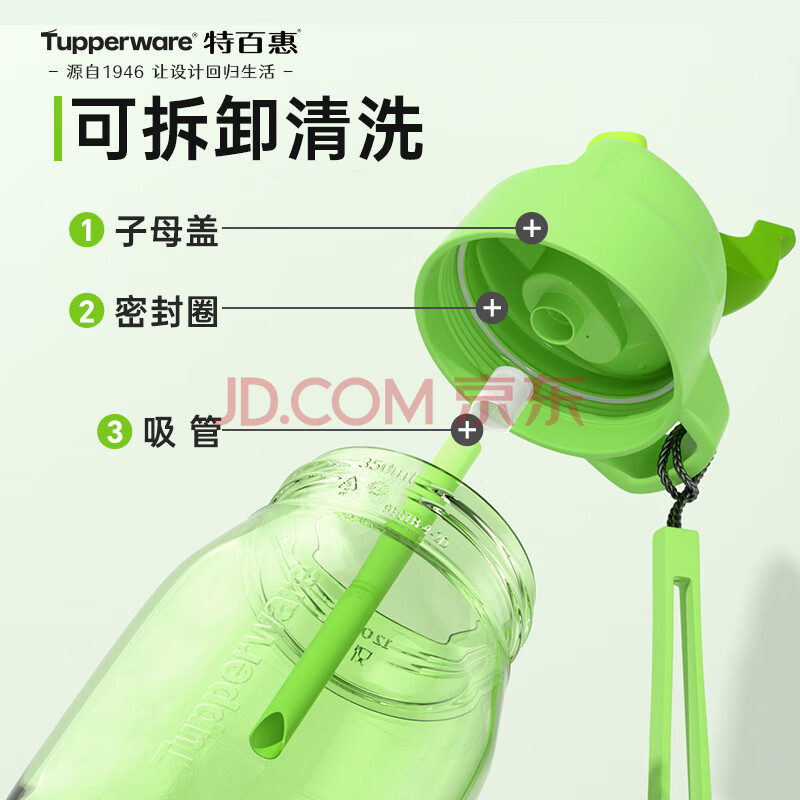 商品相册:特百惠(Tupperware)CC企鹅350ML塑料杯男女学生儿童水杯子便携带吸管 香瓜绿第1张/共7