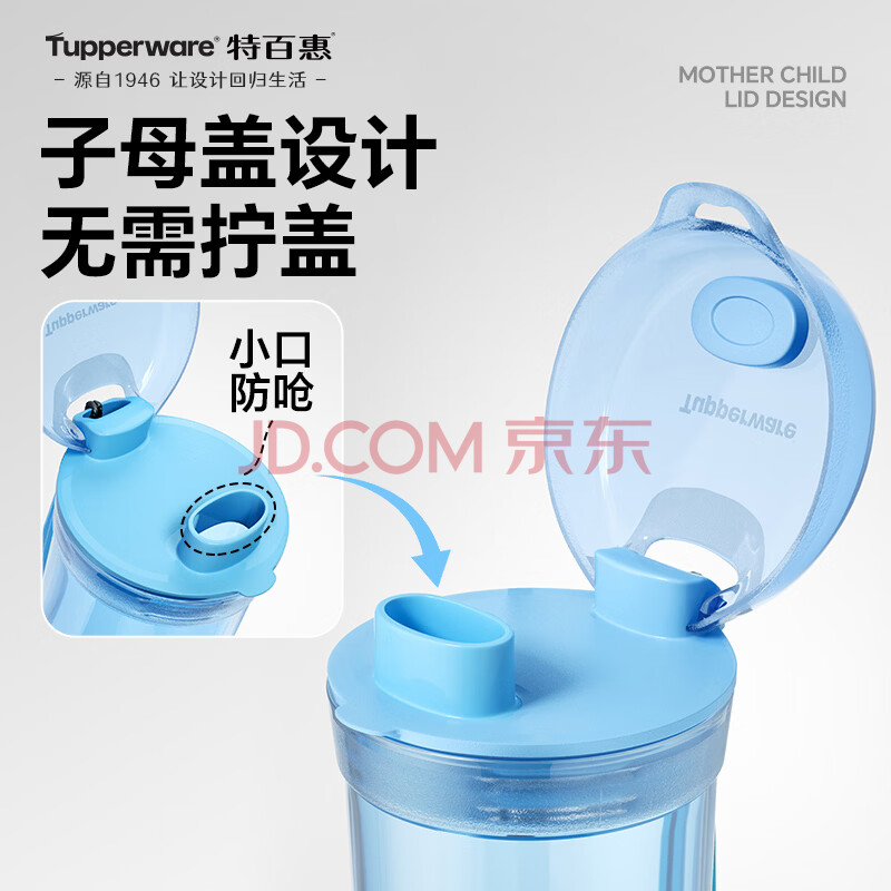 商品相册:特百惠(Tupperware)晶彩mini塑料杯280ML 男女学生夏季水杯子儿童双饮口便携 晴天蓝第
