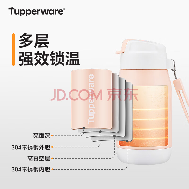 商品相册:特百惠(Tupperware)CC保温杯330ML带吸管男女学生儿童便携水杯子圣诞礼物 晨光粉第