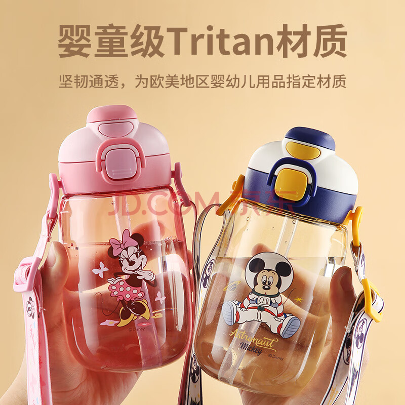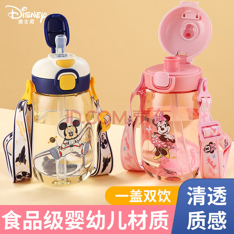商品相册:迪士尼儿童水杯带吸管夏季双饮塑料壶幼儿园男女小学生便携直饮喝水杯子第
