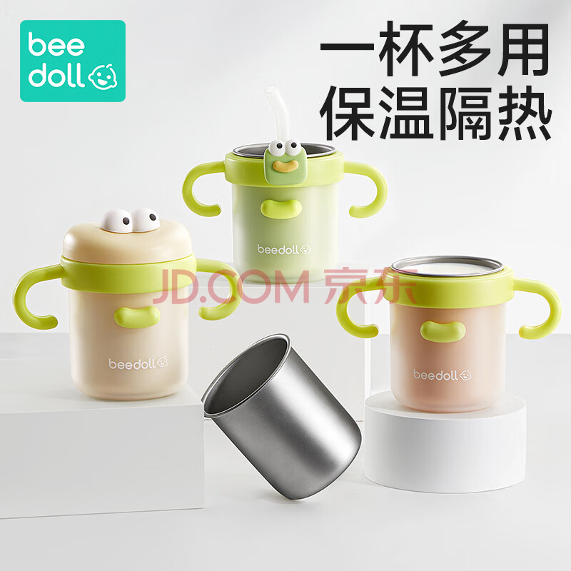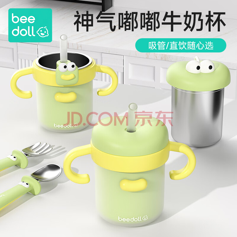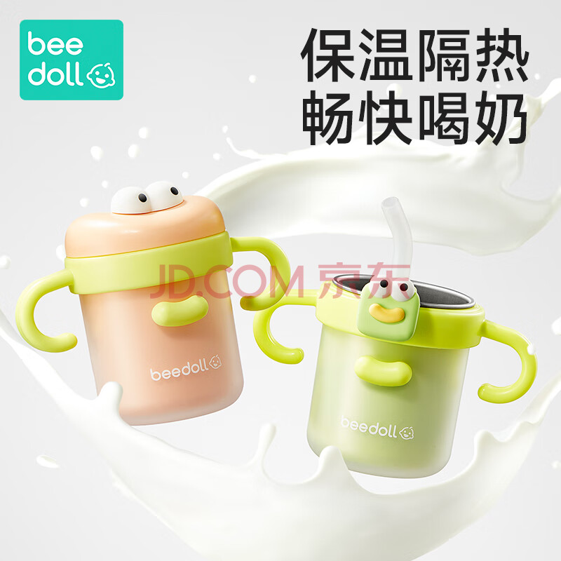 商品相册:beedoll儿童水杯宝宝吸管牛奶杯316L不锈钢带刻度幼儿园水杯耐摔-泡泡粉第