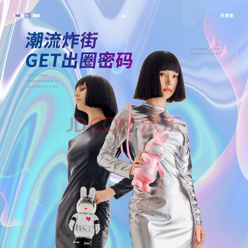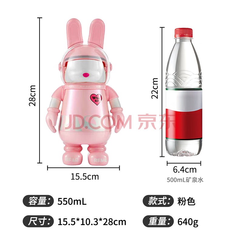 商品相册:BEARBENS熊本士保温杯儿童水杯316不锈钢学生水壶女士生日礼物月球兔粉第
