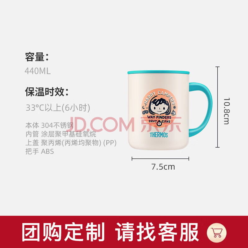 商品相册:THERMOS保温杯马克咖啡杯440ml带盖茶杯男女儿童水杯子TCDG-451LC-Rosa第