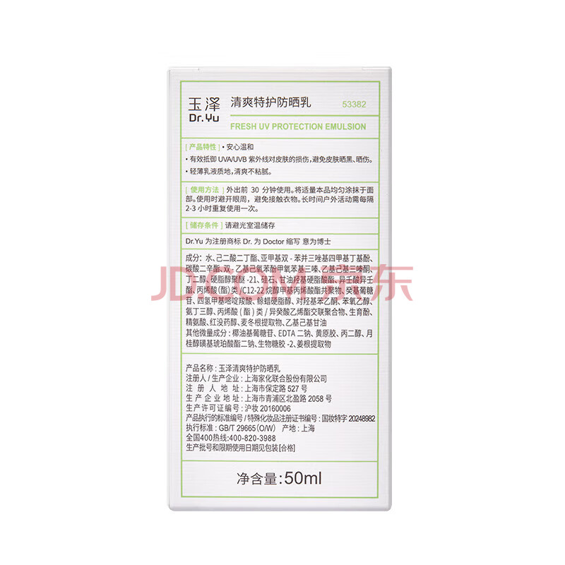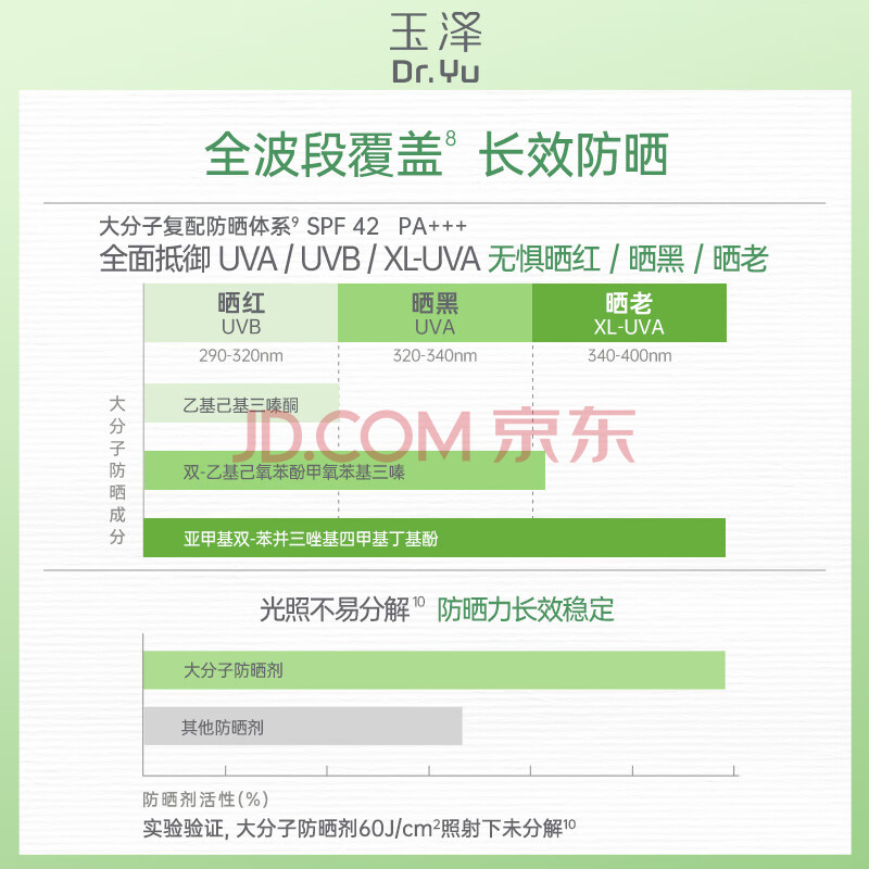 商品相册:玉泽(Dr.Yu)清爽特护防晒乳SPF42 PA+++大分子防晒 敏感肌温和免卸50ml第