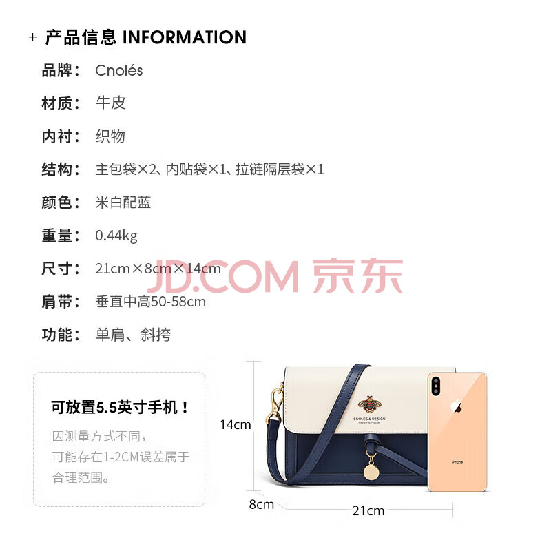 商品相册:蔻一(Cnoles)斜挎包包女士牛皮单肩高端通勤小方包生日礼物送女友老婆第