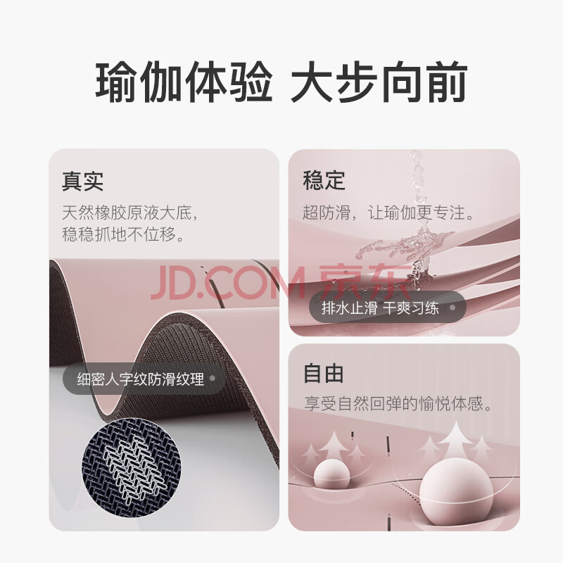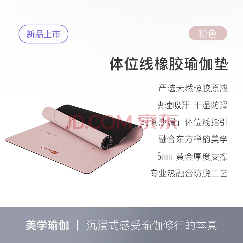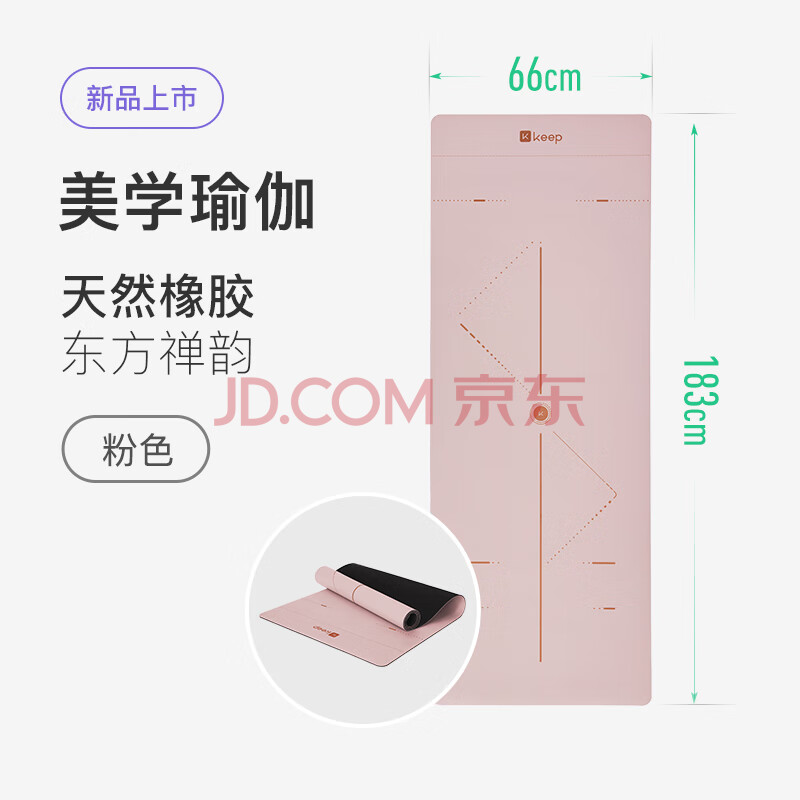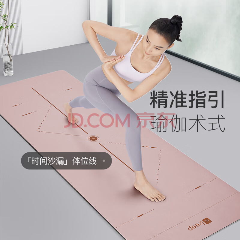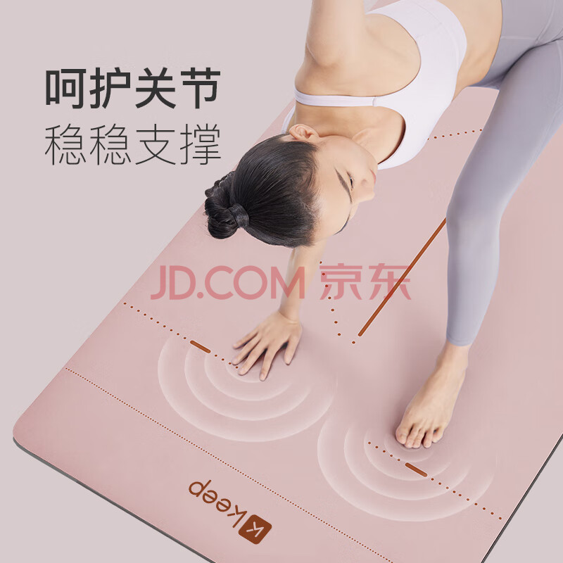 商品相册:Keep天然橡胶专业防滑女男家用健身地垫辅助体位线瑜伽垫 眉黛粉第1张/共9