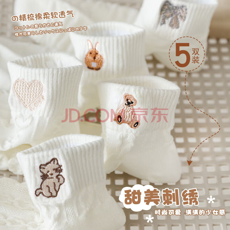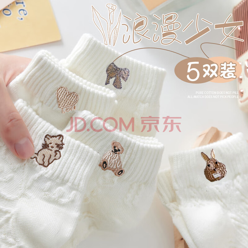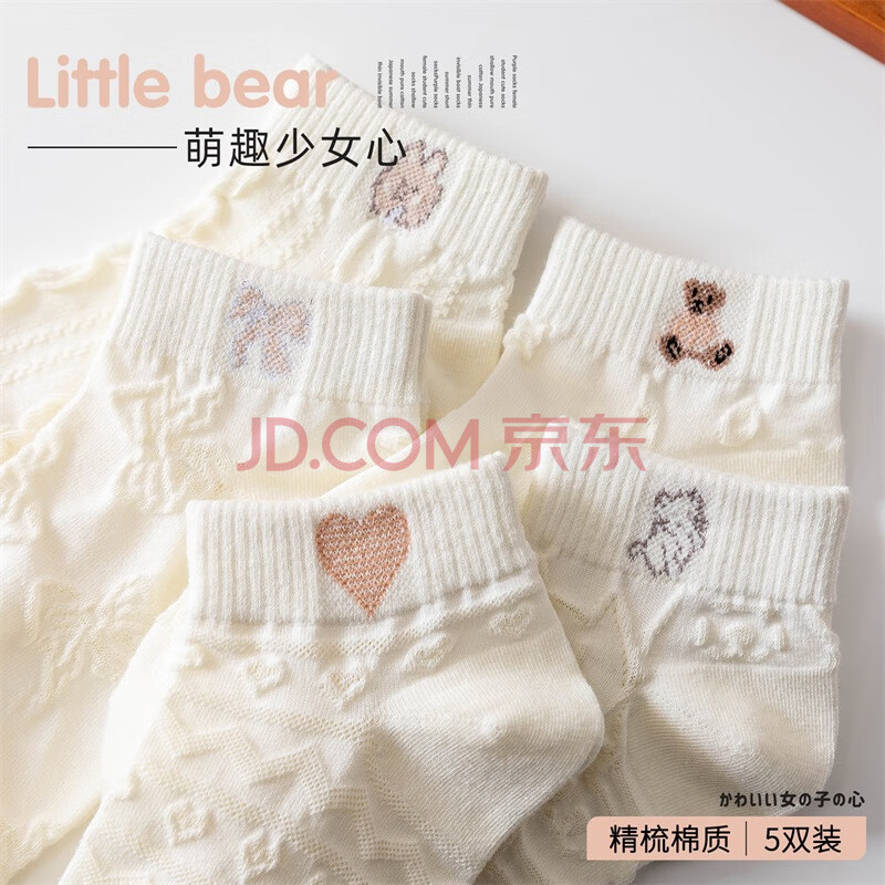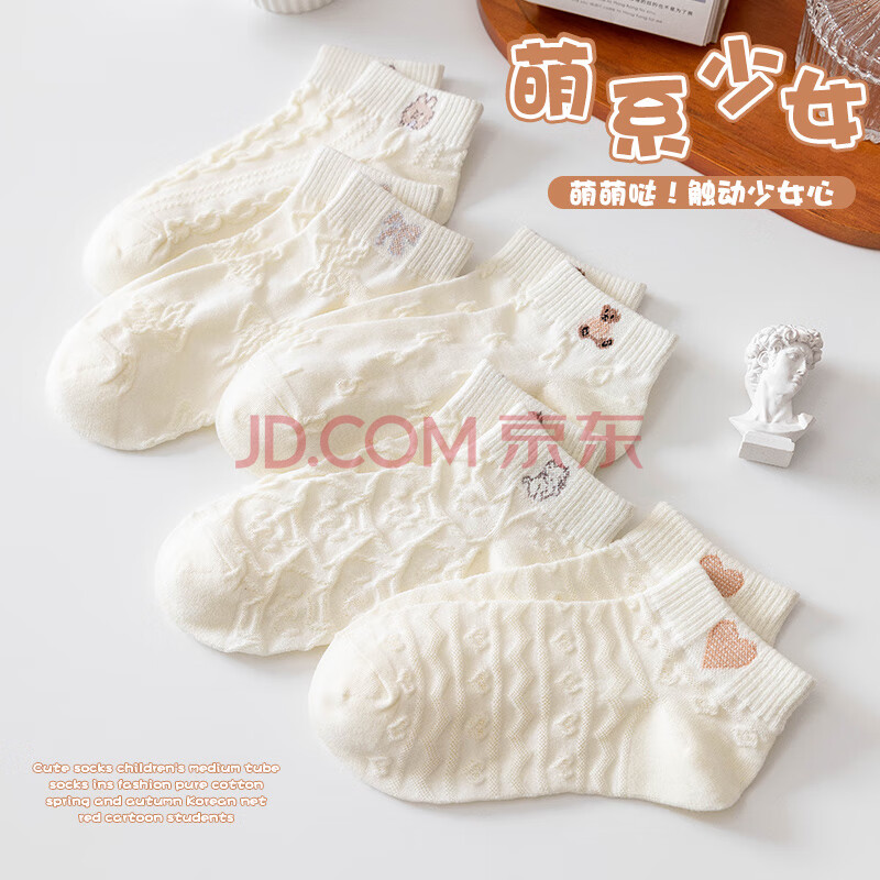商品相册:莫代尔5双袜子女夏季薄款棉质短袜透气浮雕少女运动船袜夏天仙女士袜子第1张/共8