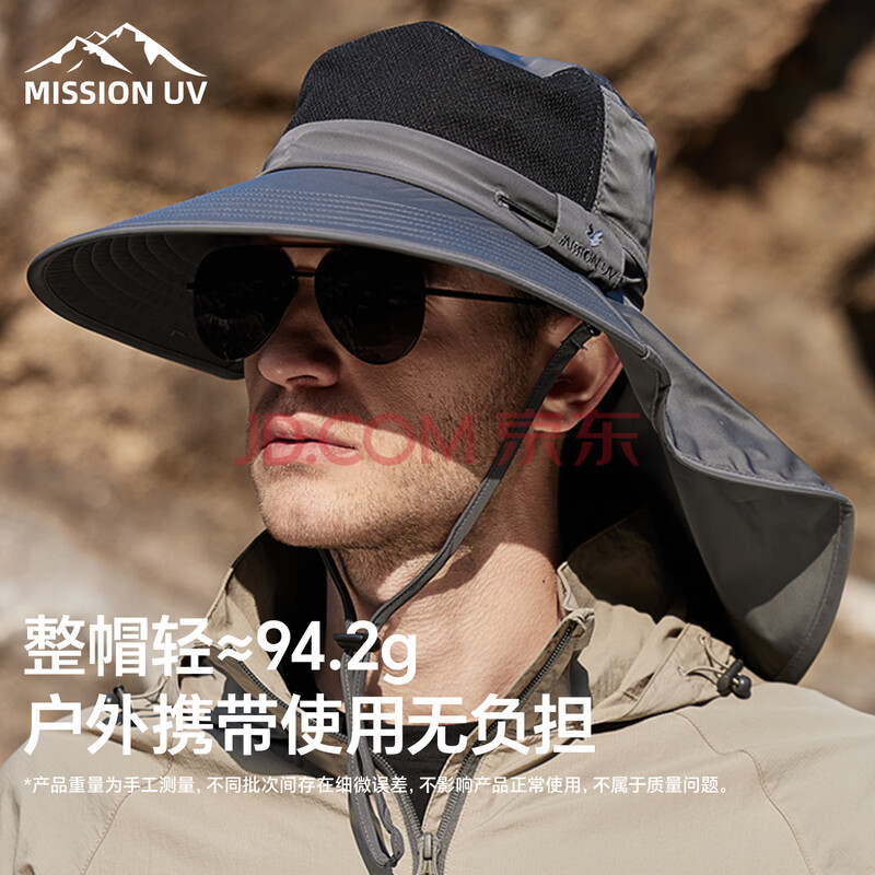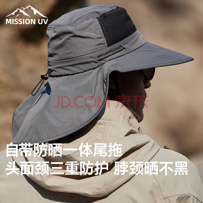 商品相册:MISSION UV防晒帽男遮阳帽钓鱼渔夫帽登山帽子夏季户外防紫外线宽帽檐太阳帽第