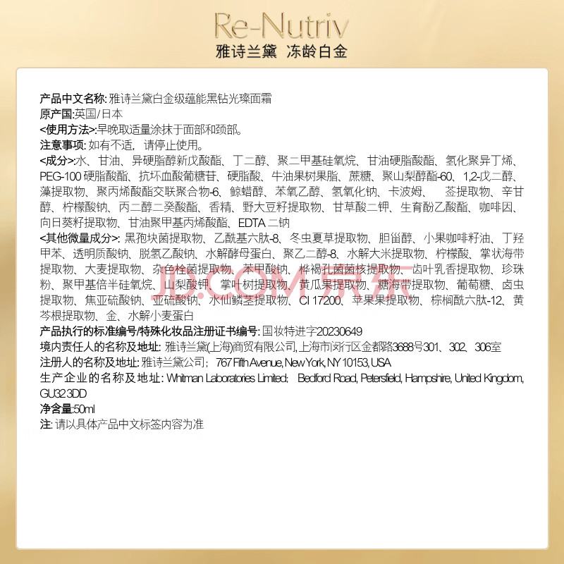 商品相册:雅诗兰黛白金逆龄面霜50ml美白紧致淡纹护肤品套装化妆品礼盒效期27年9月第
