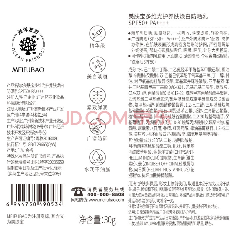 商品相册:美肤宝多维光护养肤焕白防晒乳SPF50+户外防水防汗30g高倍防晒霜清爽第