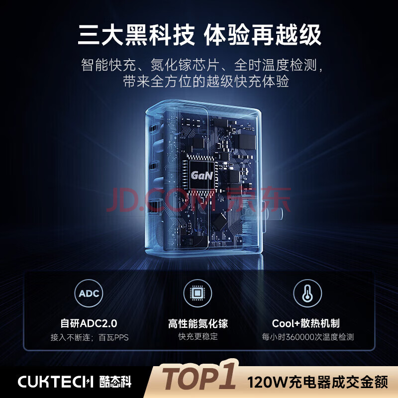 商品相册:CUKTECH酷态科10号氮化镓充电器套装120W三口快充头兼容PPS100W适用苹果17小米华为荣耀手机平板笔记本第