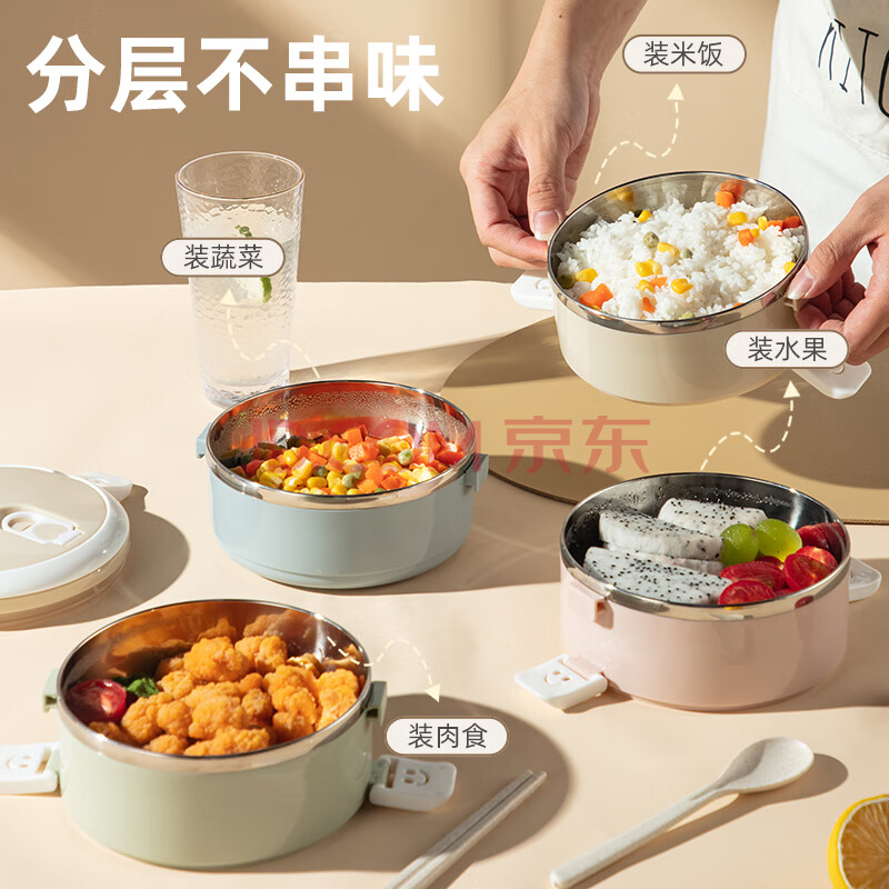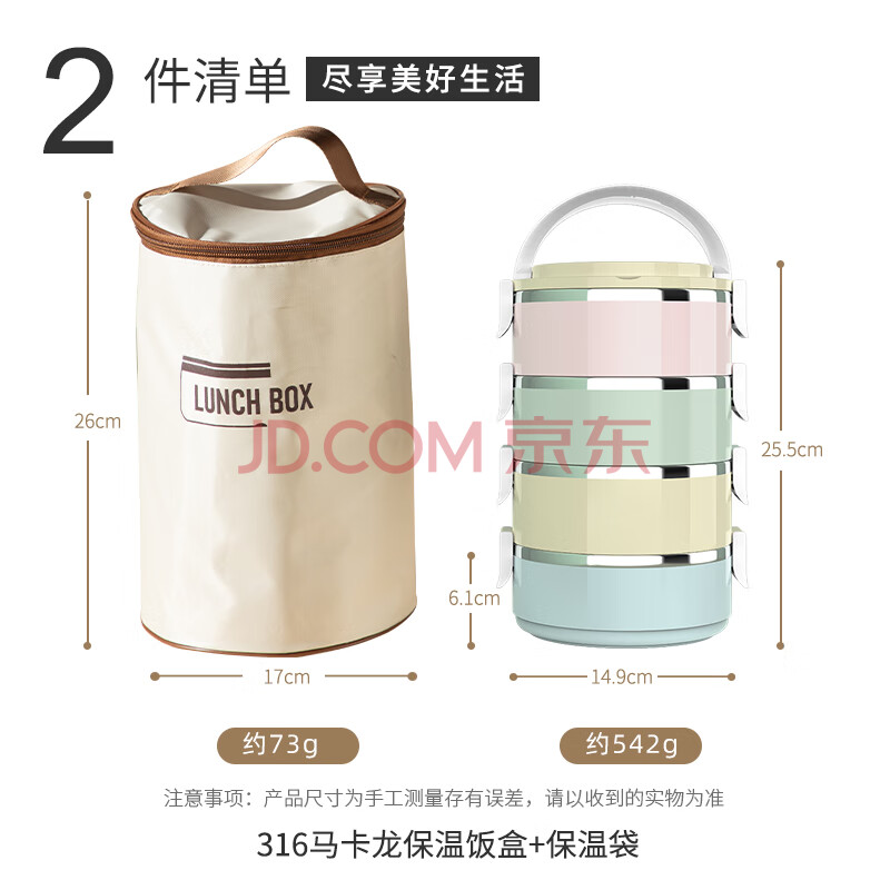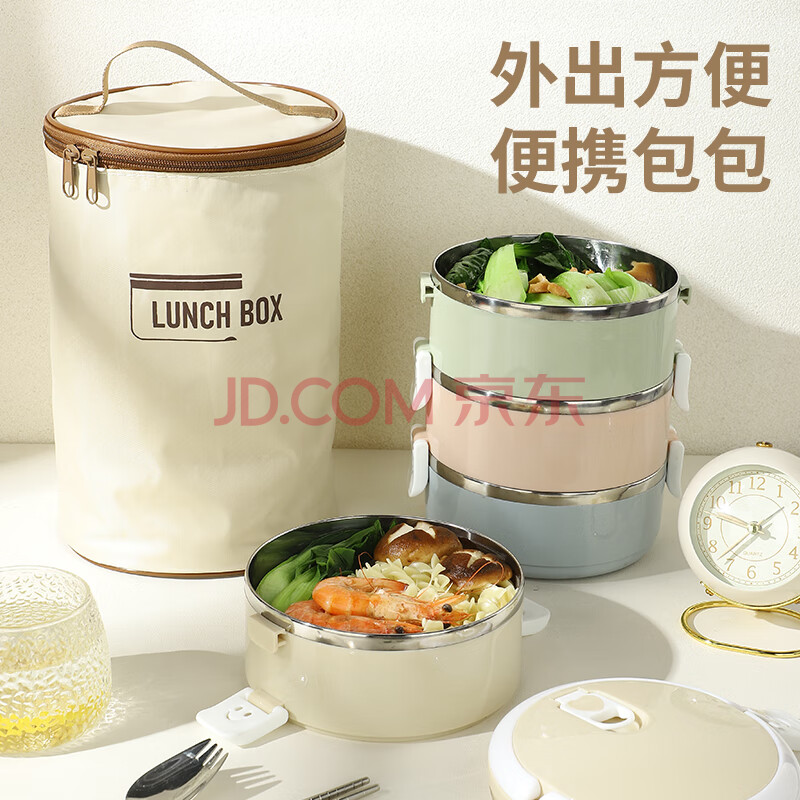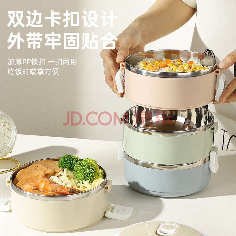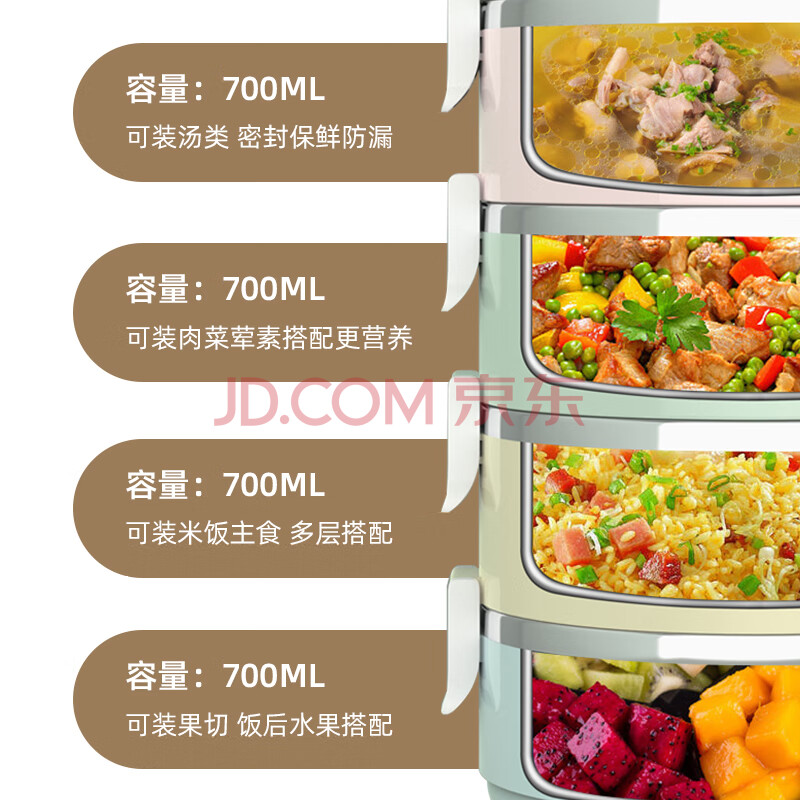 商品相册:广意 316L不锈钢四层保温饭盒多层可组合马卡龙便当盒+保温袋GY8883第