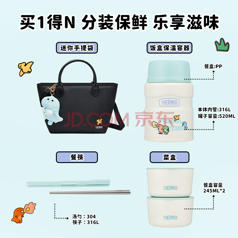 商品相册:膳魔师(THERMOS)儿童餐具焖烧杯316L不锈钢宽口保温饭盒带餐包餐具上学TCLF第