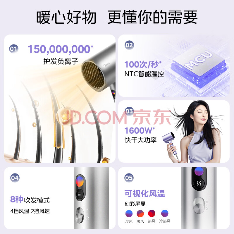 商品相册:美的(Midea)1.5亿负离子护发电吹风 大功率快干吹风机 家用护发不伤发吹风筒 FD205-星光银 节日/生日礼物推荐第