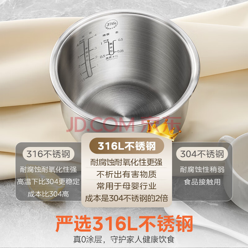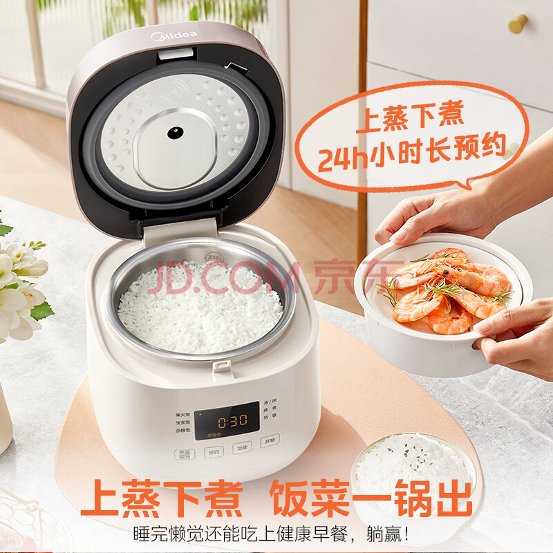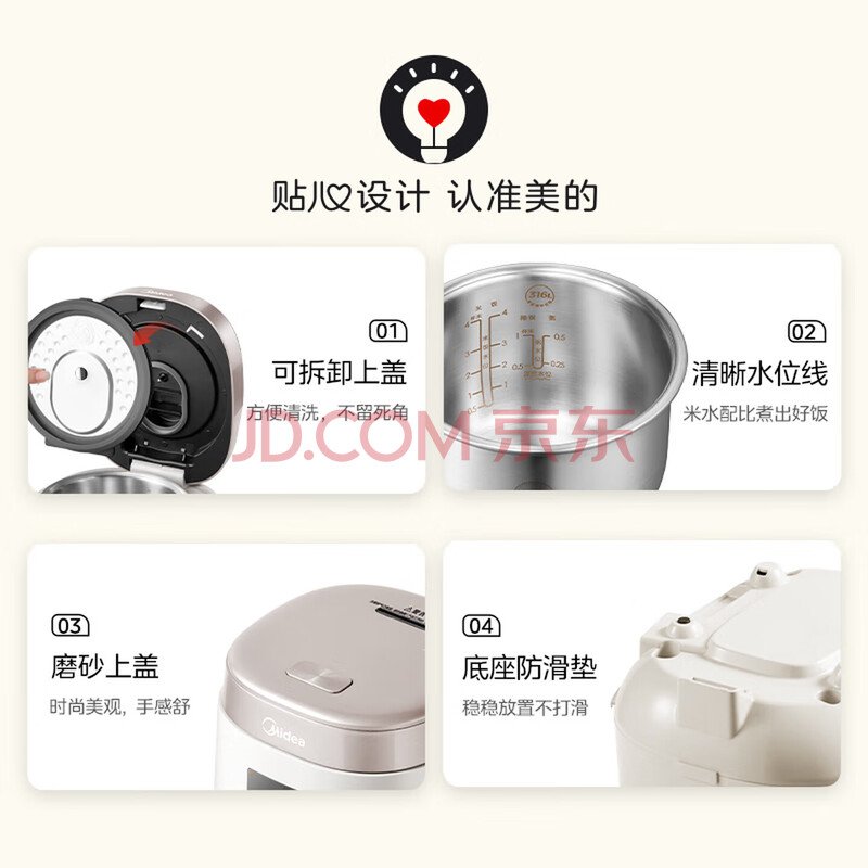 商品相册:美的(Midea)电饭煲0涂层2L不锈钢内胆1-2人电饭煲电饭锅 家用智能多功能微压无涂层电饭煲MB-RC201S第