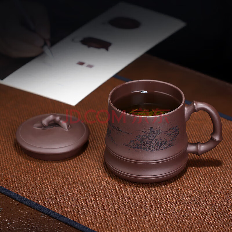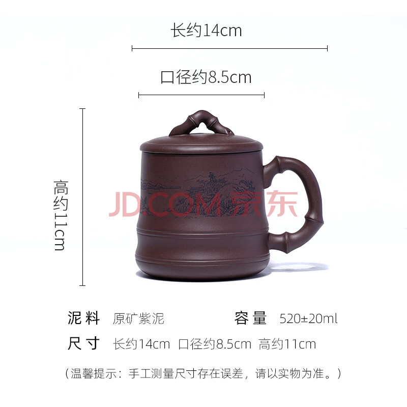 商品相册:百年利永宜兴紫砂盖杯纯全手工原矿紫泥竹趣杯功夫茶具男士办公泡茶水杯子第