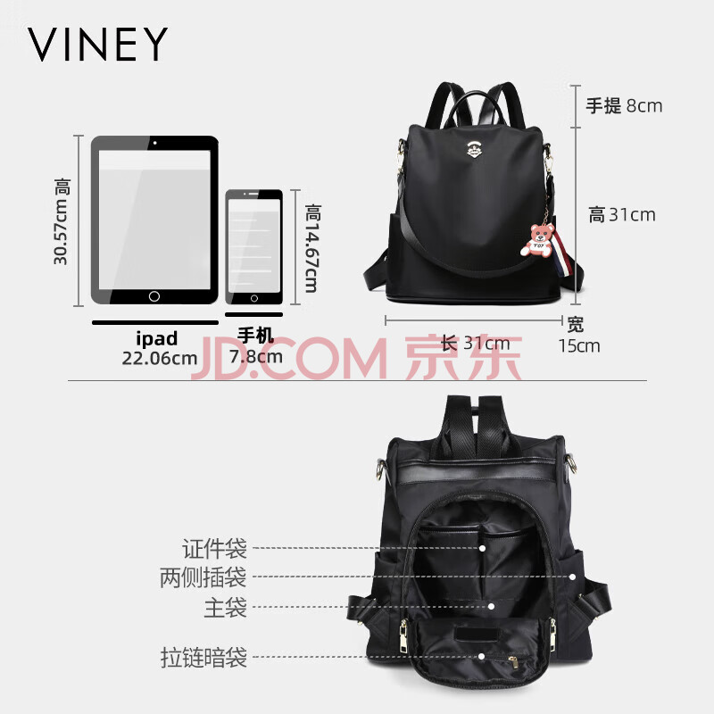 商品相册:viney双肩包女休闲大容量轻便帆布包旅行背包高颜值书包生日礼物送女友第