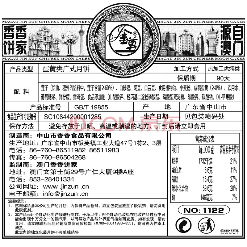 商品相册:金尊澳门双黄莲蓉600g月饼礼盒铁盒【送礼品袋】中秋送礼广式150g*4个第