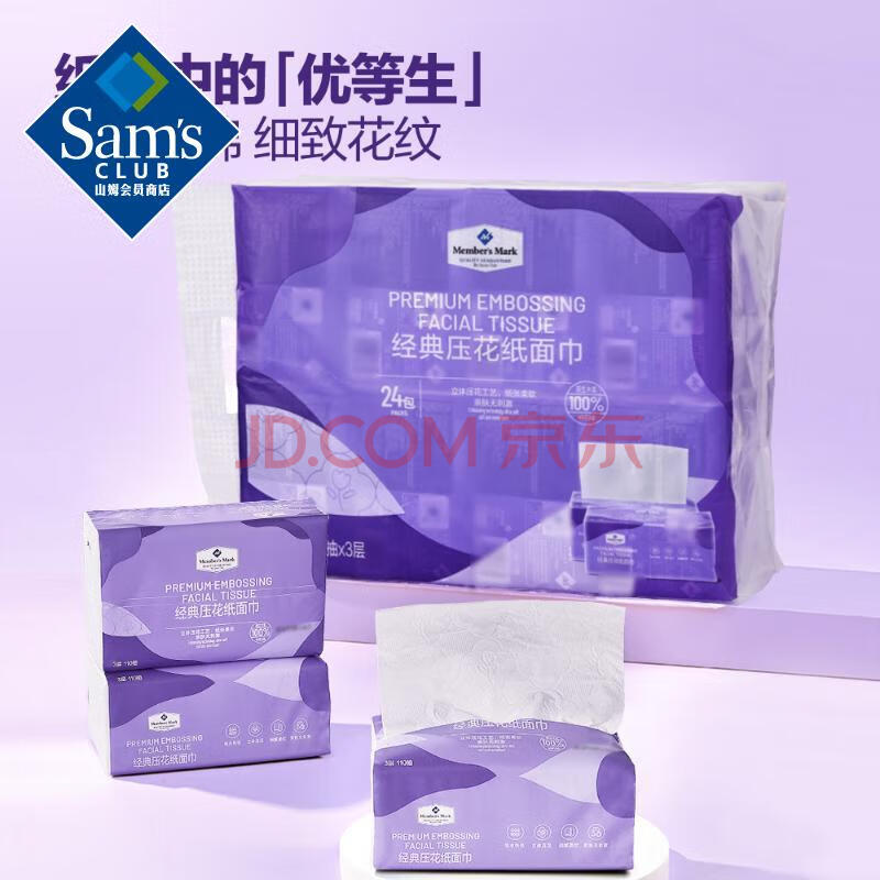 商品相册:经典压花纸面巾 三层 110抽*24包 3层 110抽*24包第