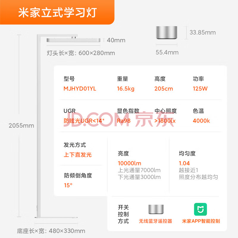 商品相册:米家(MIJIA)小米大路灯立式护眼学习灯全光谱台灯智能灯具灯头可旋转 标准版第