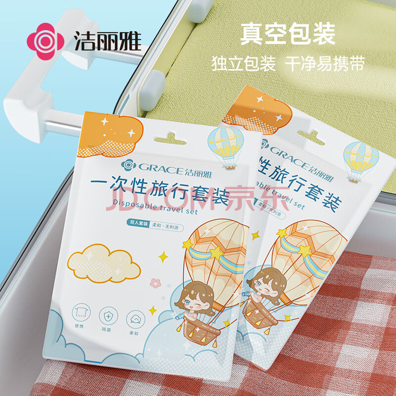 商品相册:洁丽雅(Grace) 旅行一次性床单被套罩枕套加厚套装酒店床上用品双人款四件套第