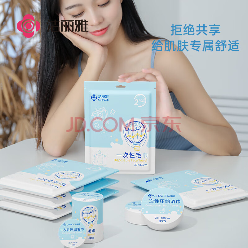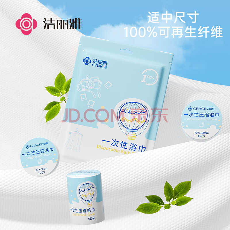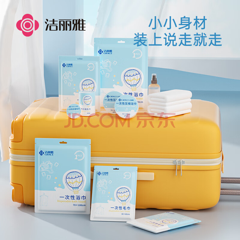商品相册:洁丽雅(Grace) 旅行一次性浴巾毛巾加厚大洗脸巾差旅酒店浴巾70*100cm/片3条装第