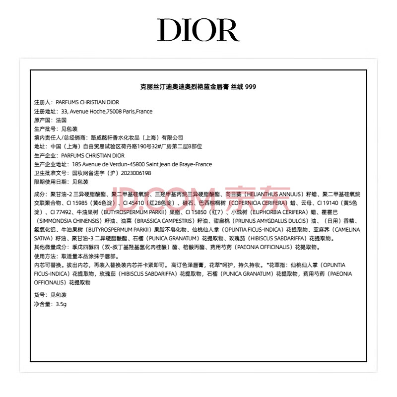 商品相册:迪奥Dior【邓为推荐】烈艳蓝金口红丝绒999哑光唇膏 生日礼物送女友第