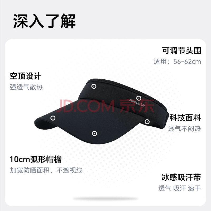 商品相册:MISSION UV防晒帽男士遮阳帽太阳帽空顶帽夏季户外登山运动跑步防紫外线帽子第