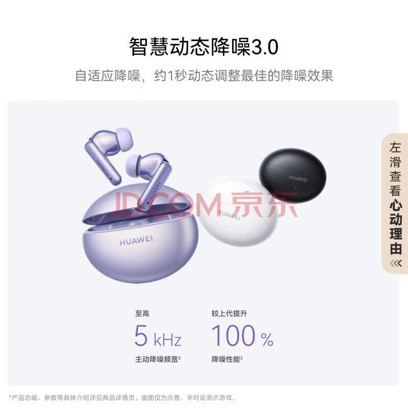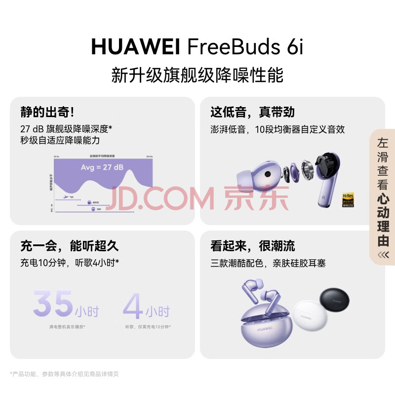 商品相册:华为FreeBuds 6i 降噪蓝牙耳机 旗舰级降噪深度 音乐游戏 安卓/苹果手机通用 流光紫第