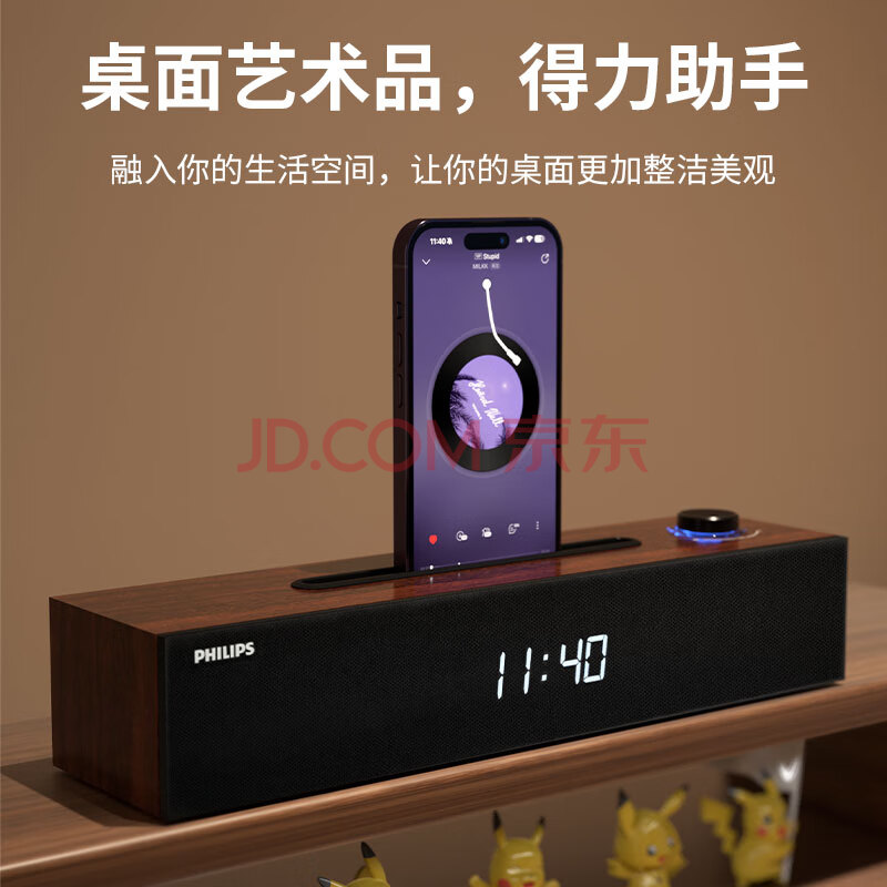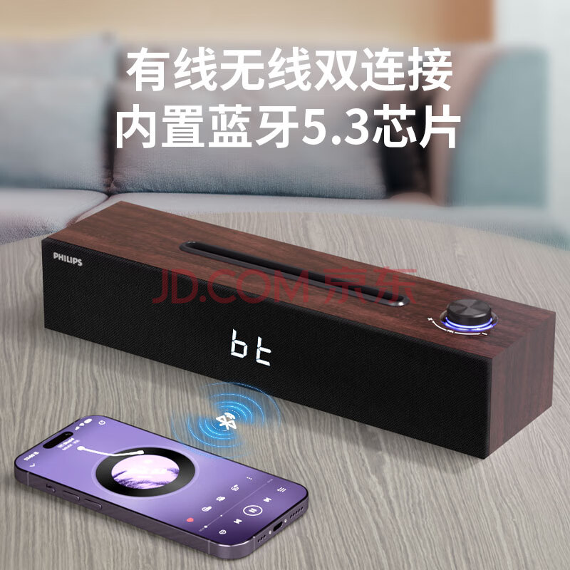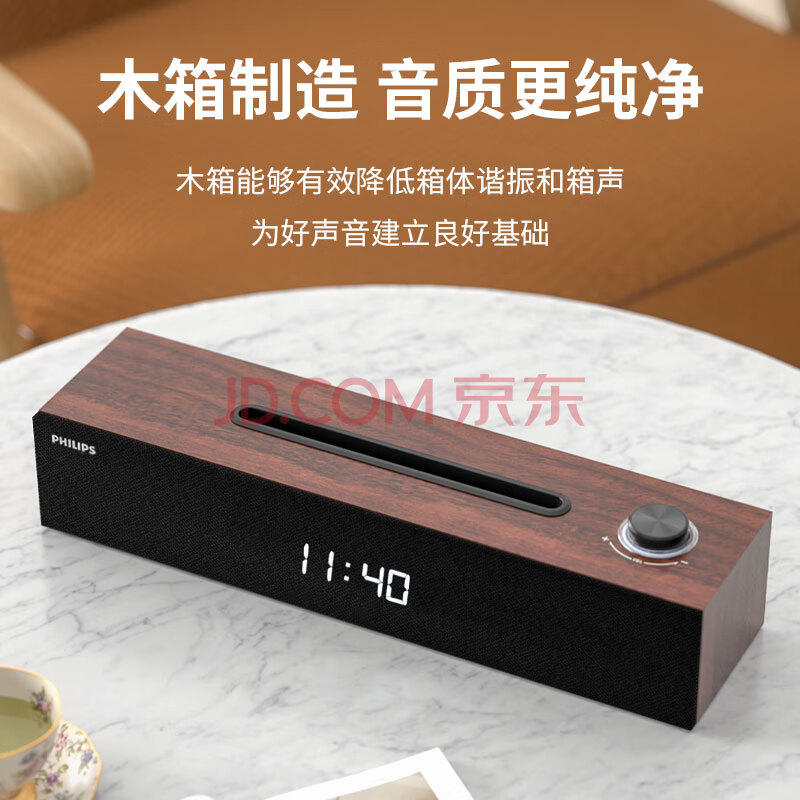 商品相册:飞利浦(PHILIPS)蓝牙音箱 电脑音响 家用桌面台式机笔记本音箱 重低音 木质时钟音箱SPA3809第