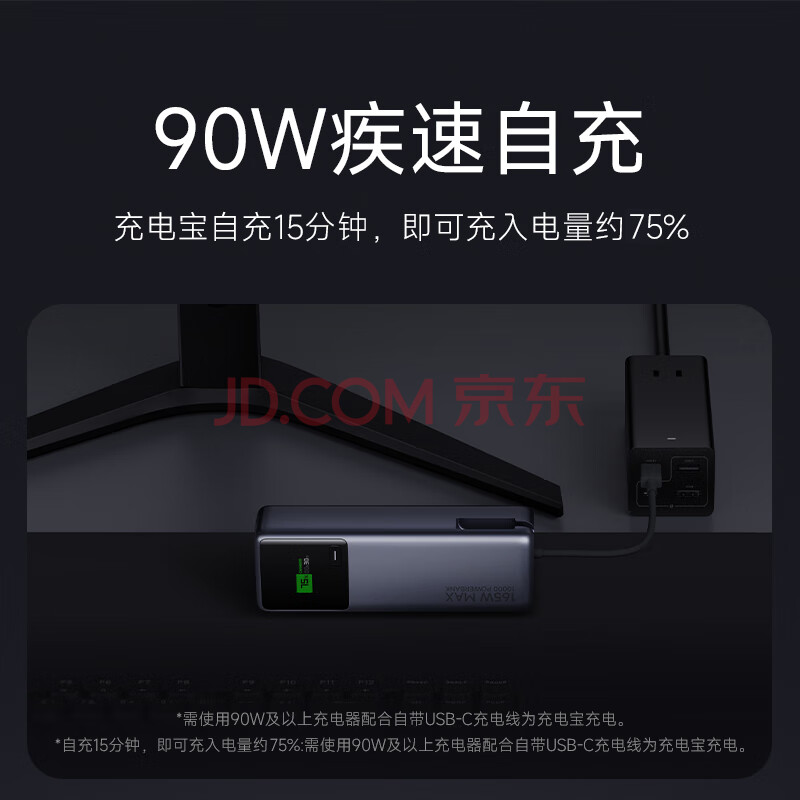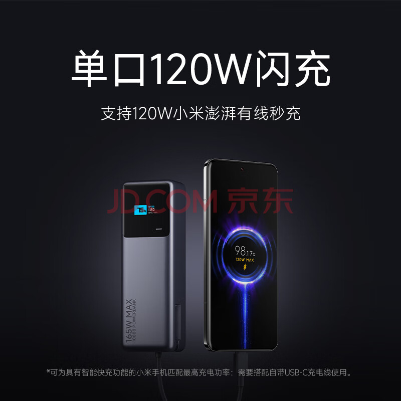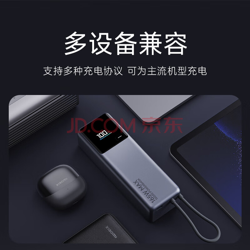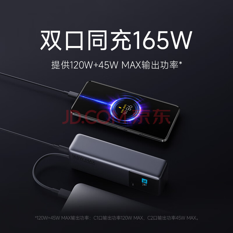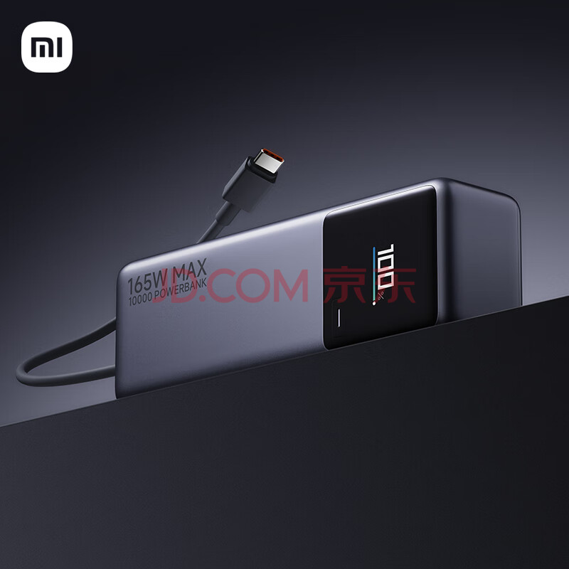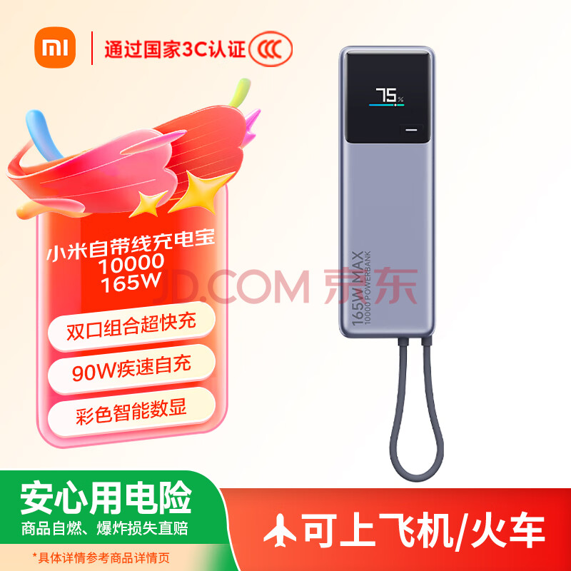 商品相册:小米(MI)【3C认证】自带线充电宝10000 165W大功率双口超快充适用于小米/红米/苹果/华为可上飞机/火车第