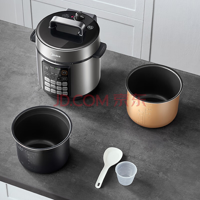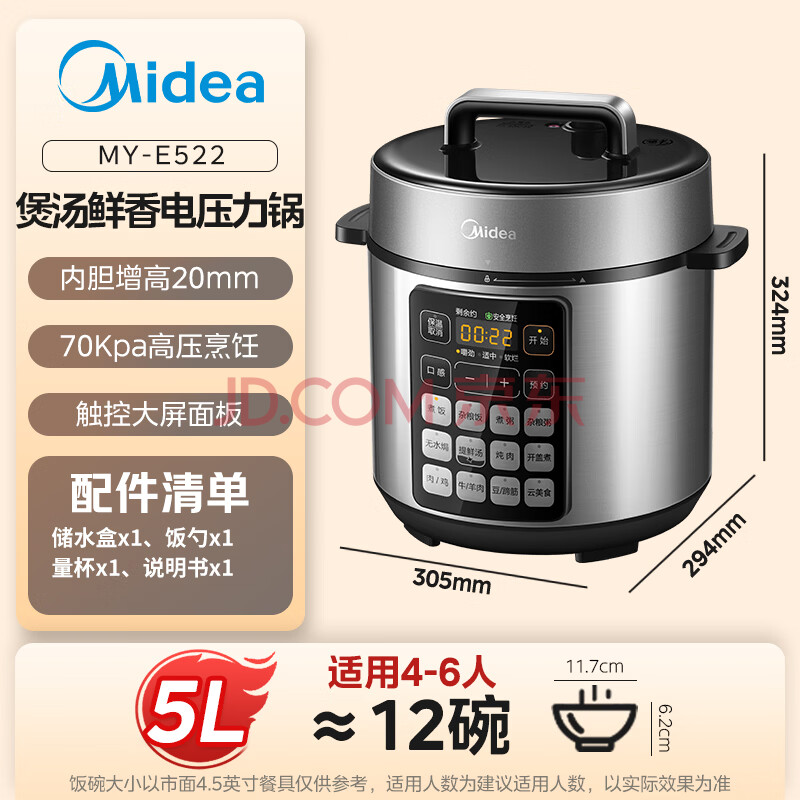 商品相册:美的(Midea)深汤智能5L全自动电压力锅提鲜祛腥电锅开盖火锅高压易清洁双胆高压锅饭煲E522(4-6人)京东第1张/共9