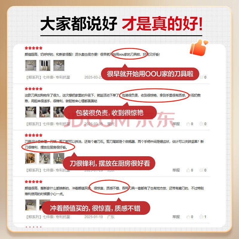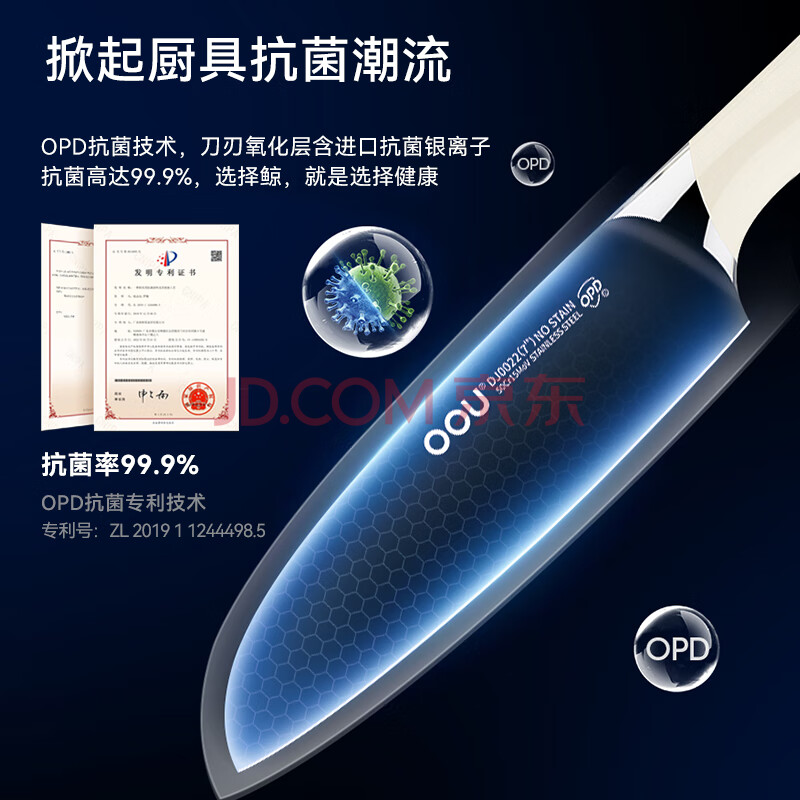 商品相册:OOU刀具套装家用厨房切菜刀德国钢材刀具全套厨具套装【白鲸】抗菌率99.9%抗氧防锈7件套白第