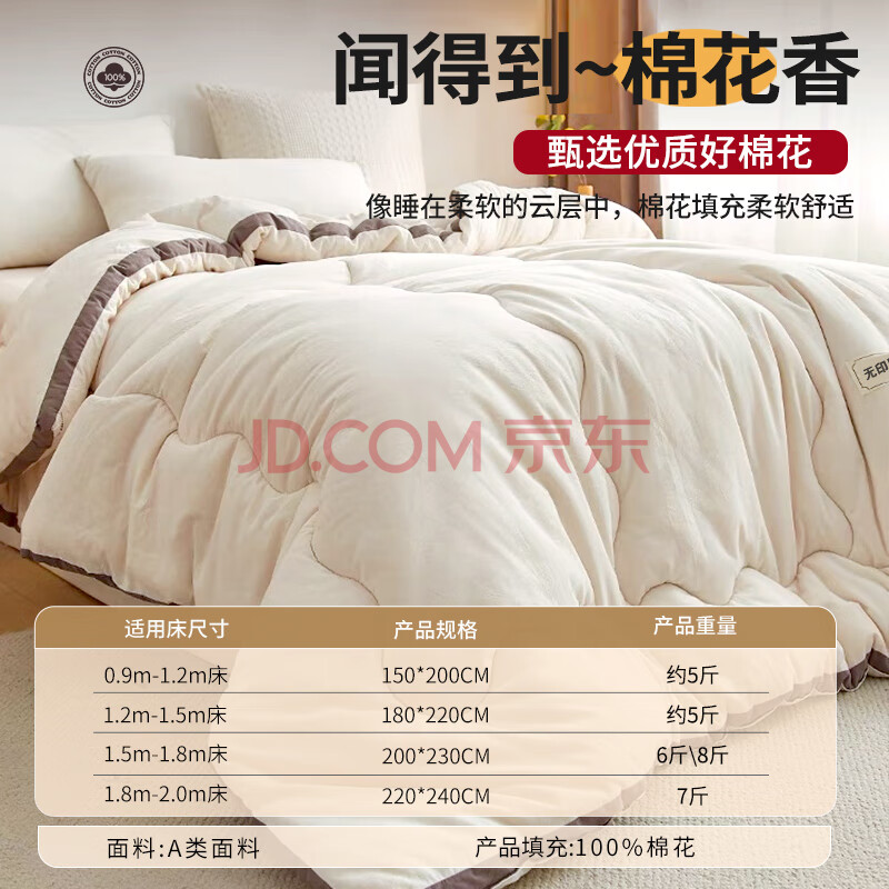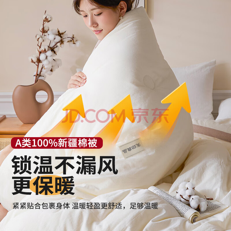 商品相册:无印良品A类100%新疆纯棉花被子 春秋空调被芯 冬季棉被加厚6斤 200*230cm第1张/共5