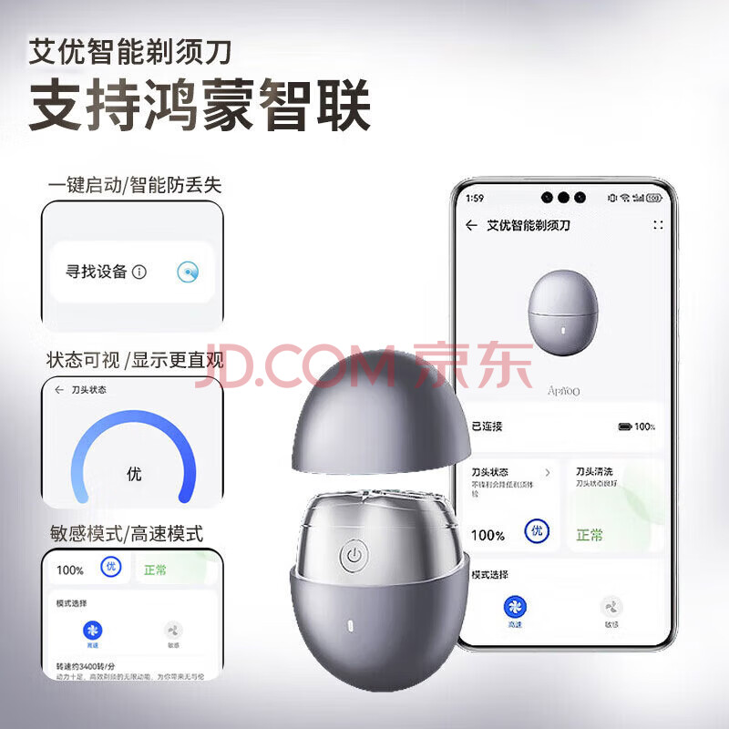 商品相册:鸿蒙智选剃须刀支持华为智慧生活小巧便携刮胡刀电动智能快充出差生日礼物情人节送男友可上飞机【星曜石】第