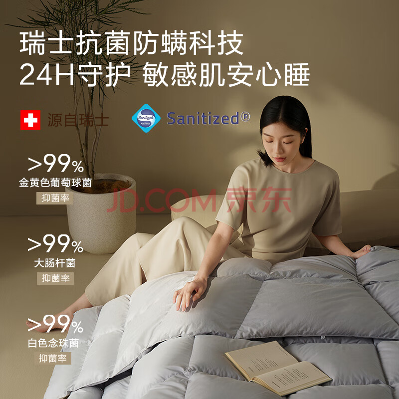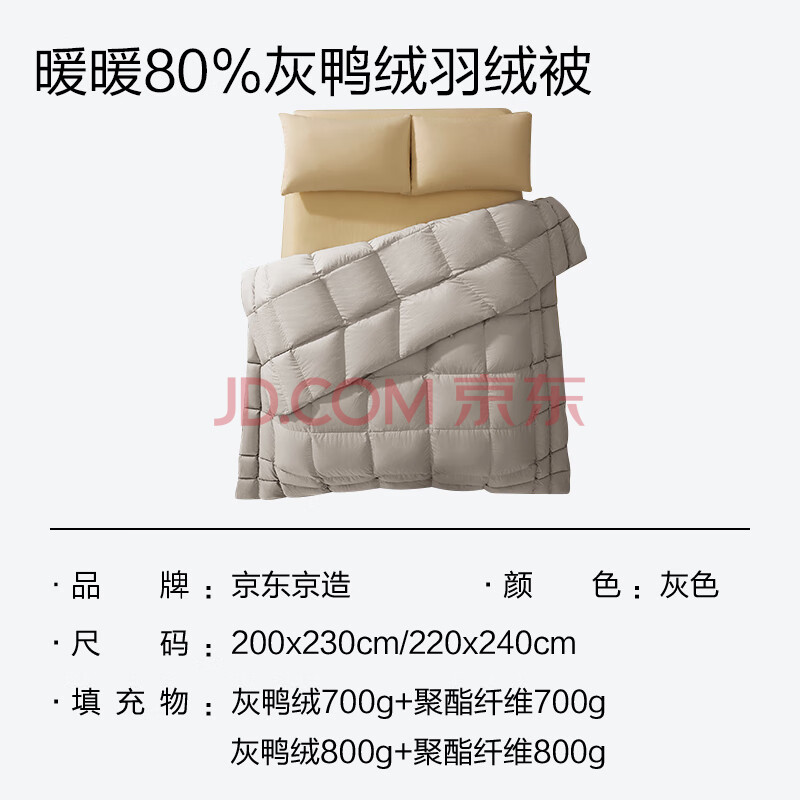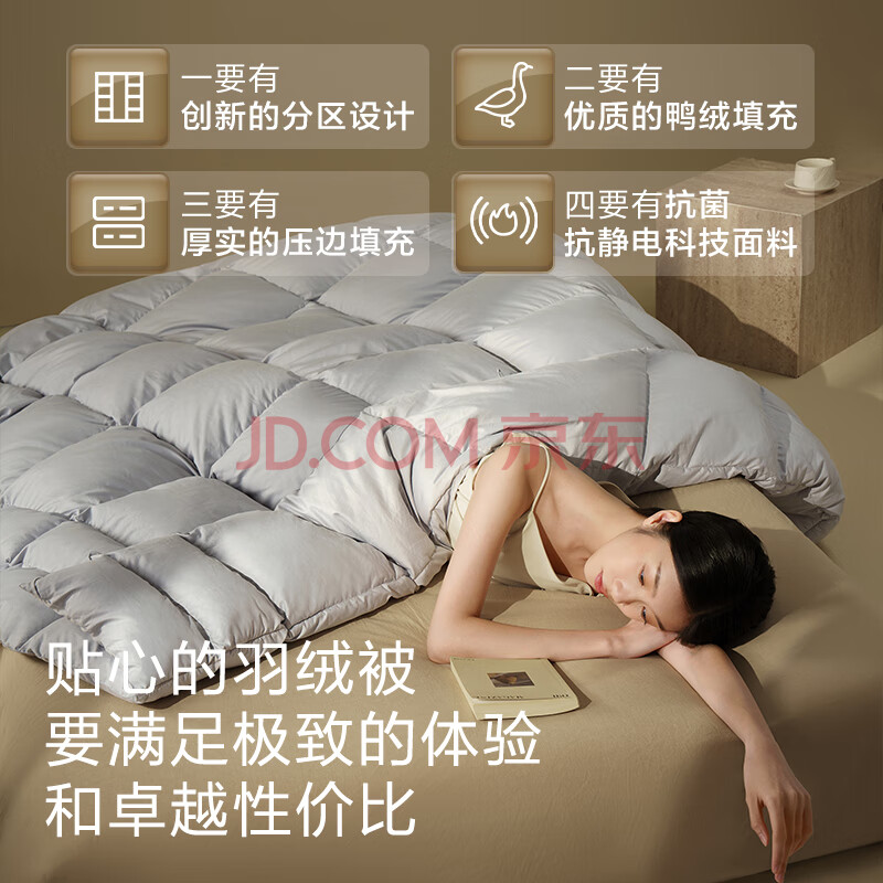 商品相册:京东京造暖暖80%分区锁温被 冬季被子被芯鸭绒被-1.4kg填充2*2.3m第1张/共9