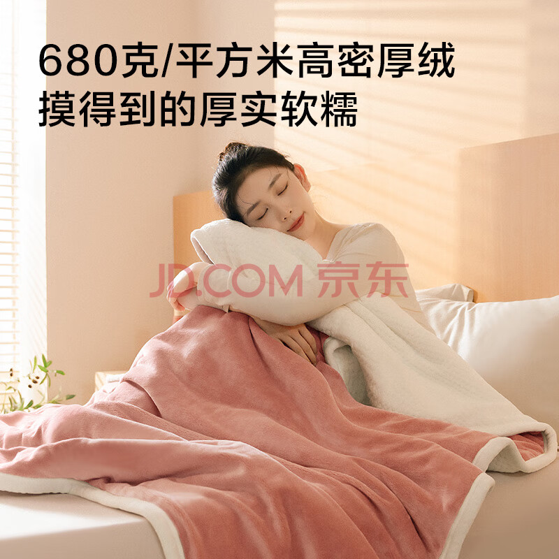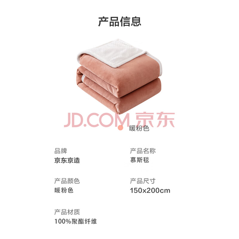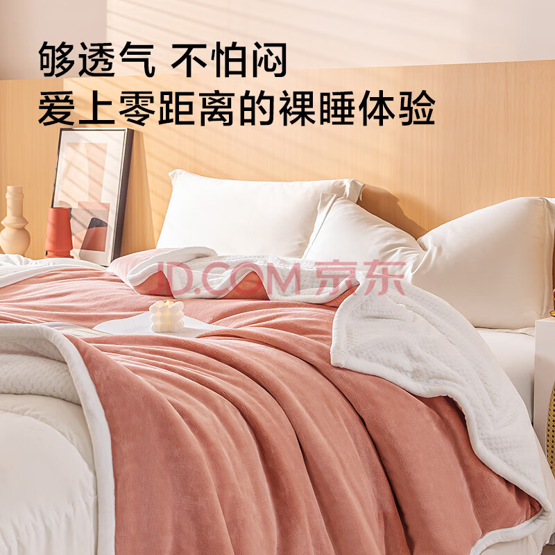商品相册:京东京造慕斯毯 2100g三层加厚毛毯双面双色法兰绒贝贝绒毯子 1.5x2m第