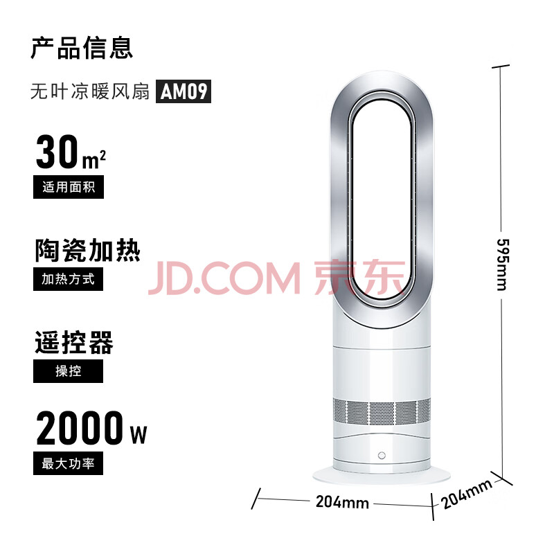 商品相册:戴森(DYSON)AM09无叶凉暖风扇 取暖器凉风扇二合一 四季适用 舒适凉风 家用凉暖风机 白镍色第1张/共9