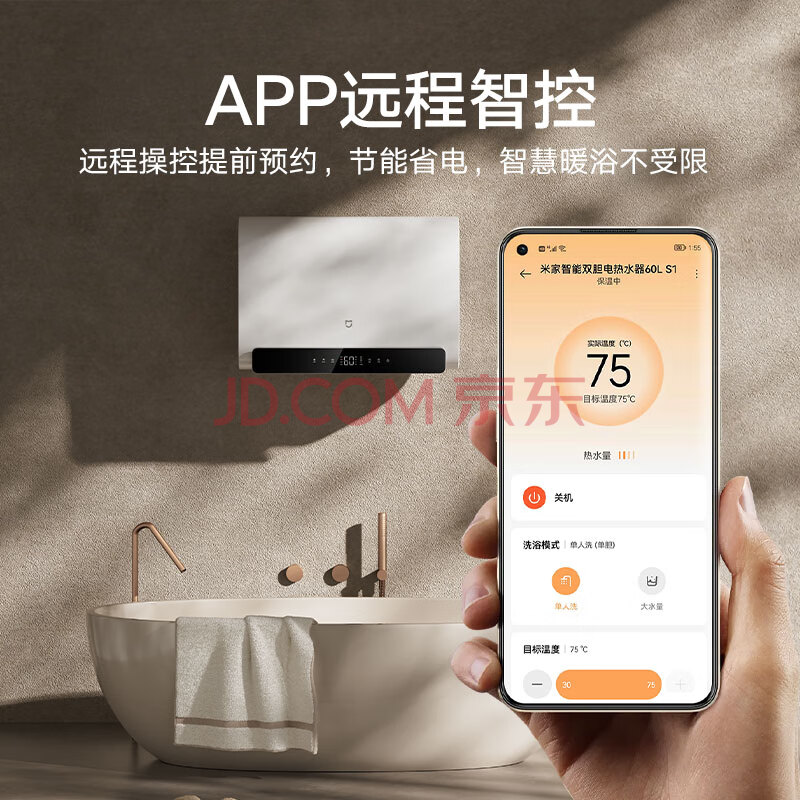 商品相册:米家小米智能双胆家用电热水器60升S1 3200W速热增容大水量超薄储水式扁桶一级能效 MJ01第