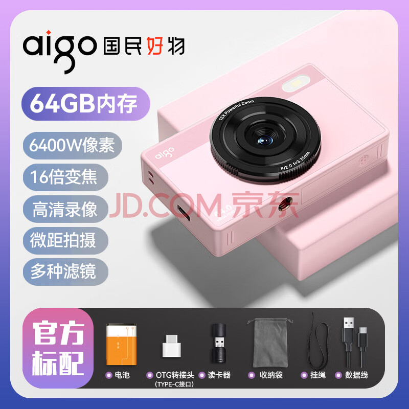商品相册:aigo爱国者E6 学生数码相机女生入门高清旅游校园卡片机复古CCD平替 64GB白色第