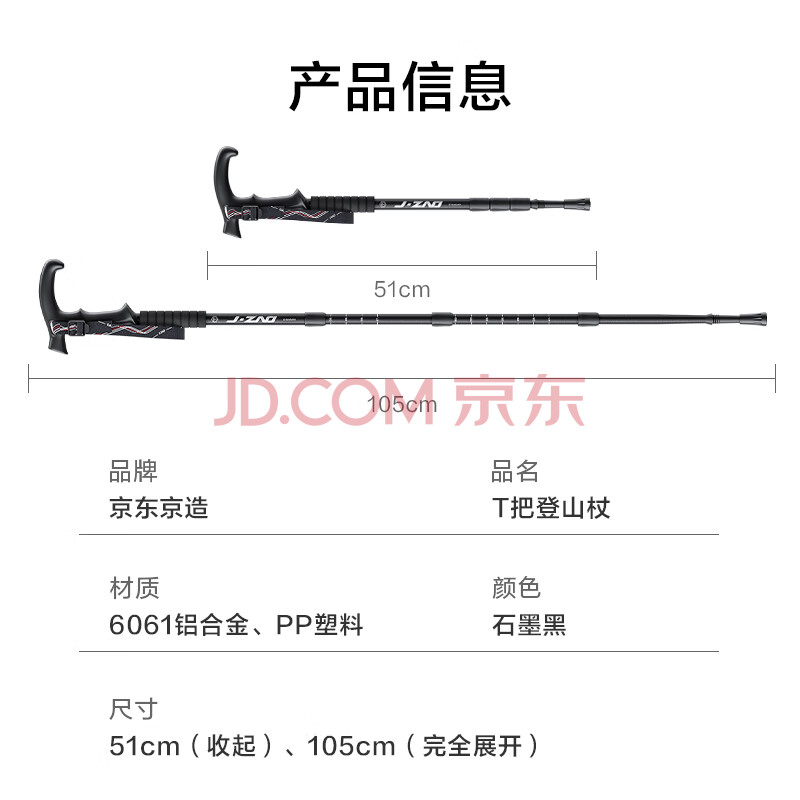 商品相册:京东京造户外T柄登山杖多功能伸缩拐杖超轻便防身防滑棍手杖爬山徒步装备第